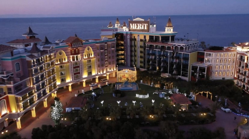 해질녘 키프로스의 메리트 로얄 다이아몬드 호텔. 메인 이벤트를 막마친